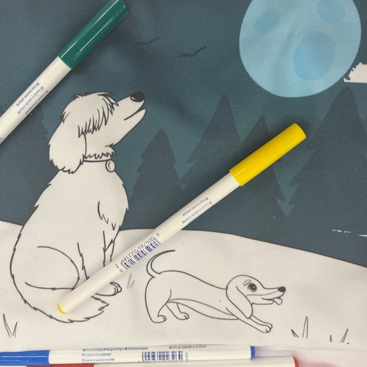 First you choose your favorite colorable t-shirt from our four designs and prepare your textile pens.