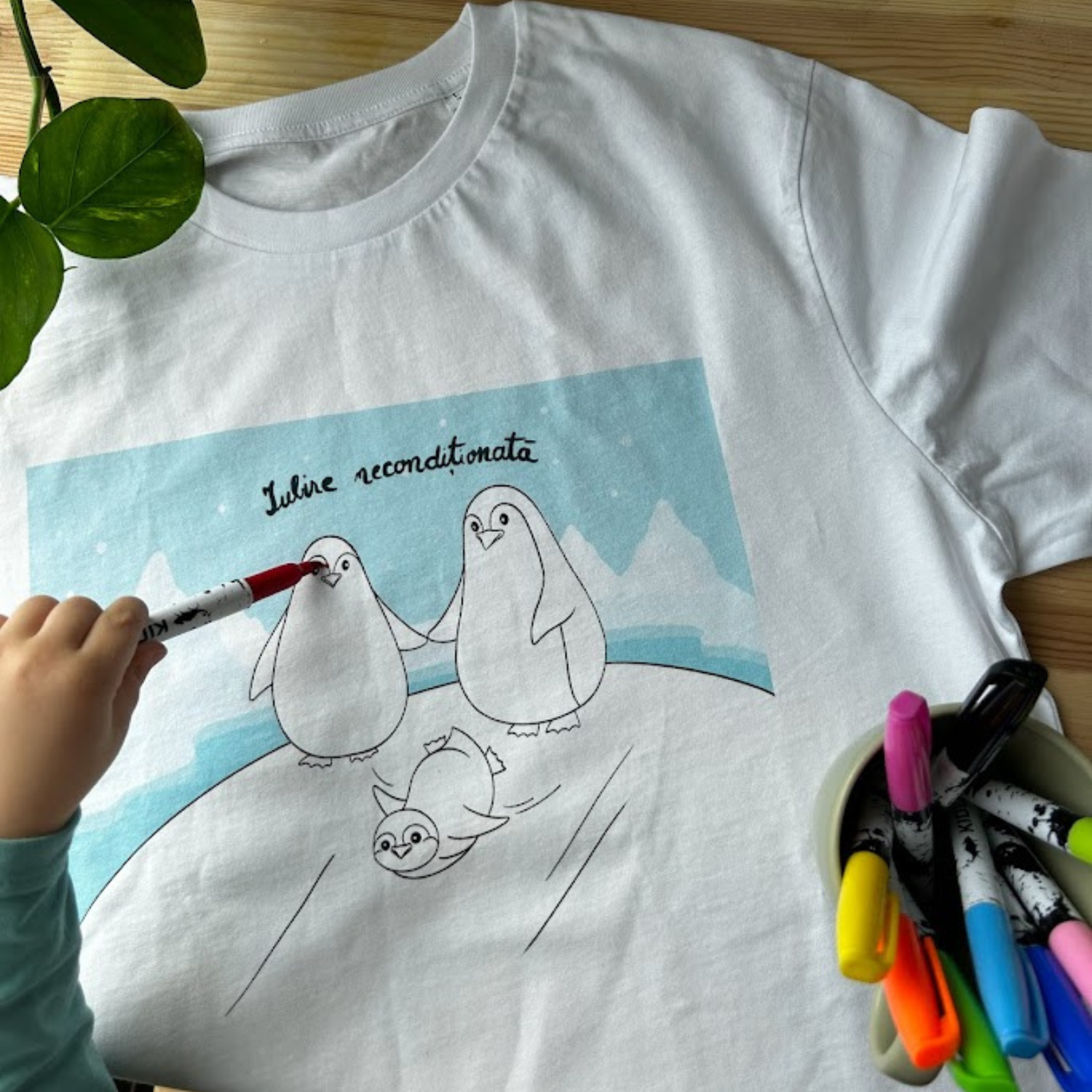 Embrace the joy of crafting and sharing! You can create lasting memories with our uniquely designed t-shirts that can be coloured! Partner with your child to personalize your very own piece of wearable art.